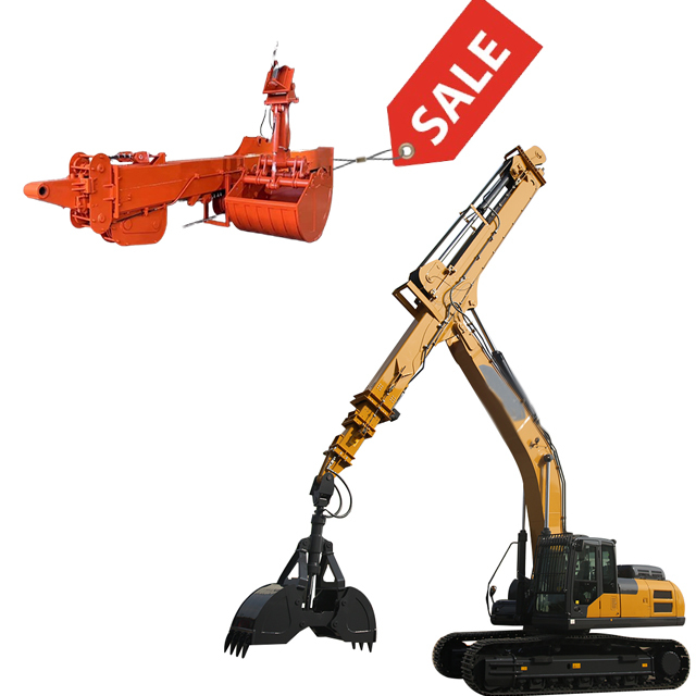 এক্সকাভেটরগুলির জন্য টেলিস্কোপিক ডিপারের একটি সেটের ছবি ক্ল্যামশেল বালতি / গ্র্যাপলের সাথে: